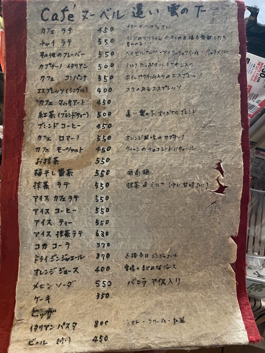 Cafe Nouvelle Tooi Kumo no Shita Menu